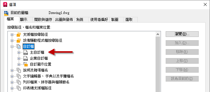 自訂 (CUI / CUIx) 檔會定義使用者介面元素,例如快速存取工具列 (QAT)、功能區面板和頁籤、選項板、「典型」工具列和下拉式功能表。根據您從中移轉的先前版本,「移轉自訂設定」公用程式會尋找「主自訂檔」設定指定的 CUI 或 CUIx 檔。除了載入主 CUI/CUIx 檔的局部自訂檔以外,也會移轉主自訂檔。