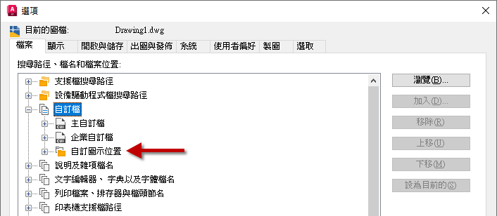 使用者紀要亦包括程式用來搜尋支援、驅動程式、自訂項目及其他檔案的位置。如果您的自訂檔案放置在預設以外的位置,這些位置的路徑會移轉,但自訂檔本身並不會移轉。使用「移轉自訂設定」公用程式的「選項」移轉您的自訂檔案,或手動複製舊版本程式和目前版本位置之間的檔案。