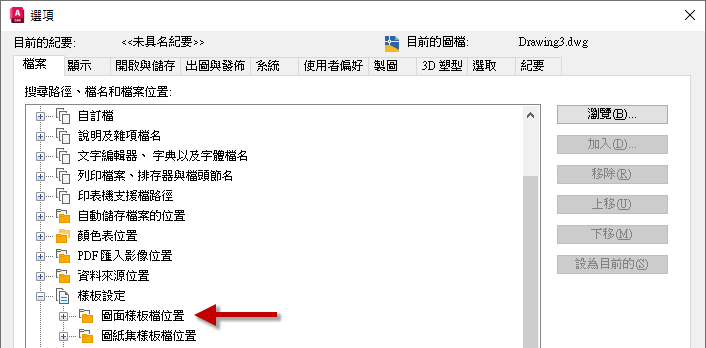 圖面樣板 (DWT) 檔可用於建立新圖面。使用 DWT 檔建立的圖面包含 DWT 檔中定義的所有型式和圖面物件。舊版本的自訂 DWT 檔會移轉至其移轉之版本之後命名的子資料夾,子資料夾的命名慣例為「產品名稱樣板」。產品名稱樣板子資料夾會建立於「圖面樣板檔位置」設定所定義的資料夾中。