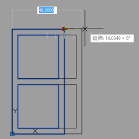 - 指定對角點:點選窗戶的下方和左側,如圖所示。