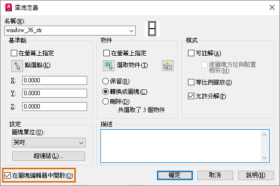 - 勾選「在圖塊編輯器中開啟」。