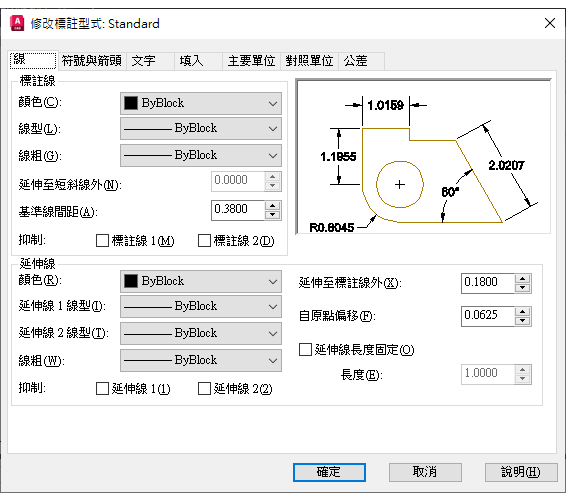 標註型式可協助您建立及執行製圖標準。您可以使用 DIMSTYLE 指令來設定許多標註變數,以控制標註外觀和模式的細微差別。所有這些設定都儲存在每個標註型式中。