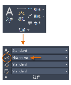在 Hitchhiker 這個案例中,目前的標註型式會顯示在「註解」面板的下拉式清單中。