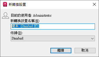 選取既有的轉換設置,新轉換設置會將其做為基礎。