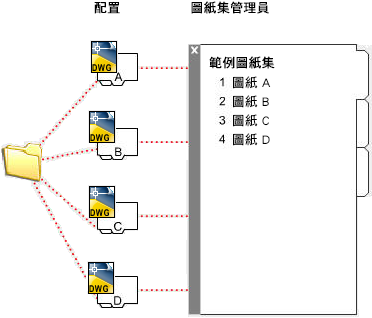 您可以使用「圖紙集管理員」管理多個做為圖紙集的圖面: