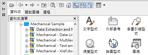 「設計中心」提供一種方法可快速尋找內容,例如圖檔、圖塊定義,以及填充線。