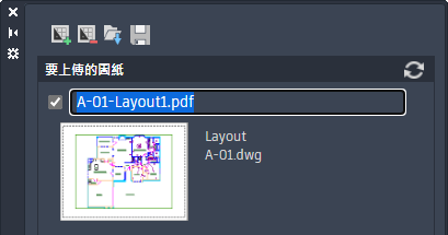 開啟「推送到 Autodesk Docs」選項板,您可以在其中選取 AutoCAD 配置,以 PDF 格式上傳到 Autodesk Docs。