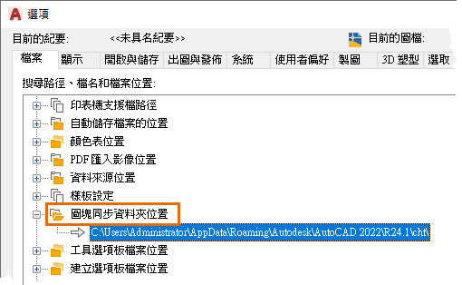 BLOCKSRECENTFOLDER - 設定儲存最近插入或建立的圖塊的路徑。
