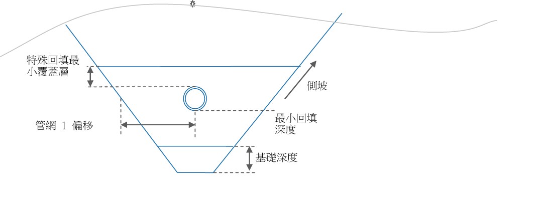 | 特殊回填最小覆蓋層 | 放置在最高管外徑上面的特殊回填覆蓋層的最小量。 | 正數 | 0.0 |