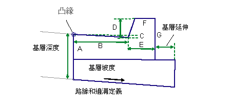 基層超出路緣背面的距離。如果基層終止於路緣背面,則使用零。 |