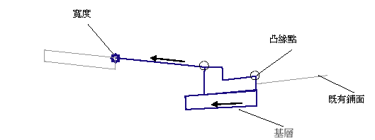 從既有鋪面邊緣到凸緣點之間所需的高程差。正值表示凸緣點在既有鋪面上方。 |