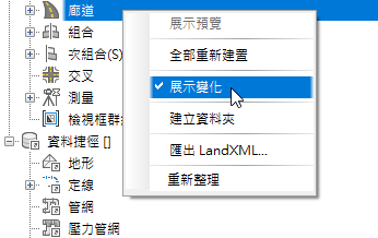 您也可以展示單一廊道的變化。若要取得更多資訊,請參閱〈在圖面中展示廊道變化的步驟〉。