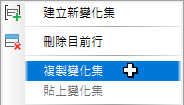 在「廊道變化全覽式」遠景中,於變化或變化集上按一下右鍵,以存取複製和貼上指令。
