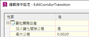使用新指令設定來控制間隙公差值。指定間隙公差後,您可以建立跨越廊道區域之間該公差值內間隙的變化。