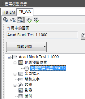 在「出圖總管」工作窗格中,於「地圖預留位置」節點下,選取剛剛建立的新地圖預留位置。按一下「擷取地圖」。