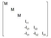 and x1, x2, x3 are components of distance from the center of gravity in the coordinate system defined in field 4. Only the magnitude of Iij should be supplied, the negative signs for the off-diagonal terms are supplied automatically. A warning message is issued of the inertia matrix is non-positive definite. A non-positive definite inertia matrix may cause fatal errors in the eigenvalue extraction module.