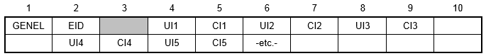 | Uli, Cli UDj, CDj | Identification numbers of coordinates in the UI or UD list, in sequence corresponding to the