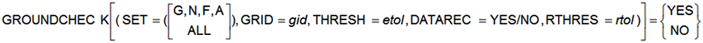 GROUNDCHECK(SET=(N), GRID=12, THRESH=1.-5, DATAREC=YES) = YES