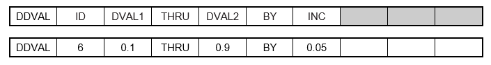| INC | Discrete value increment. | Real | Required when using alternate format |