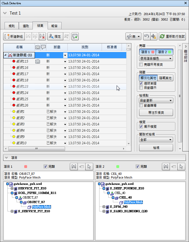 - 僅展示「結果」頁籤的「場景視圖」或「選集樹」中目前選取的項目涉及的衝突。