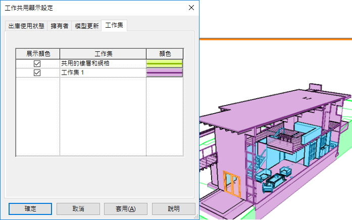 對每個工作集按一下「顏色」。在「顏色」對話方塊中,選取要使用的顏色,然後按一下「確定」。