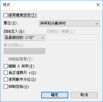 依預設,會選取「使用專案設定」選項。這意味著數值將根據專案中的「單位」設定來顯示。