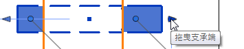 當您選取製造吊架時,請使用繪圖區域中的控制以修改吊架支座的位置。