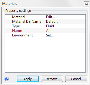 To allow the air properties to vary with pressure, click Set... on the Environment line. On the Material Environment dialog, select Variable, and click OK.