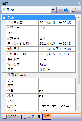 性質會根據是由系統定義還是由使用者定義來進行區隔。收闔或展開各個群組以檢視這些定義的性質。