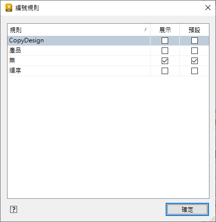 選取「編號規則」,以設定可在您的 Copy Design 規劃中使用哪些命名規則。您也可以設定預設編號規則。
