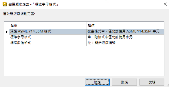 - 在「變更版序規則定義」對話方塊中,選取要指定給所選料件的新版序規則。按一下「確定」。