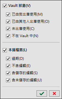 您也可以選取「Vault 狀態」或「本端檔案」,來選取該品類中的所有選項。