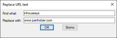 Vyhledá a nahradí zadaný textový řetězec v adrese URL používané v hypertextových odkazech, které jsou připojené ke všem vybraným objektům.
