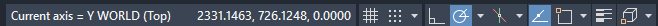 Poznámka: Když je aktivní RTUCS, šest ortografických orientací se zobrazí vždy, když se USS zarovná s některou z nich. Pokud jste například otočili osu x o 90 stupňů od globální polohy pomocí RTUCS, na stavovém řádku se zobrazí: aktuální osa = X < 90 Přední. Tyto informace lze také zobrazit pomocí procházení.
