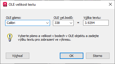 Měřítko OLE objektu je změněno automaticky a bude přizpůsobeno velikosti textu.