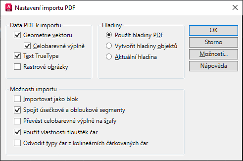 -PDFIMPORT (příkaz): Nastavení