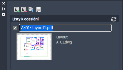 2. Vytvořte seznam listů, které budou k dispozici k odeslání do služby Autodesk Docs, pomocí těchto ikon: