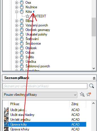 - Přetáhněte příkaz, který chcete přiřadit k akci dvojitého kliknutí, z podokna Seznam příkazů do podokna Uživatelské úpravy: <název souboru>.