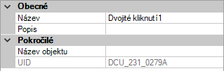 V podokně Vlastnosti se zobrazí vlastnosti vybrané akce dvojitého kliknutí.