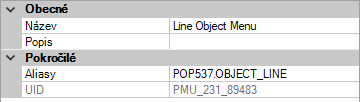 Chcete-li vložit možnosti nabídky, které se vztahují k vybranému objektu nebo objektům stejného typu, používejte alias OBJEKT_název objektu nebo OBJEKTY_název objektu. Název objektu musí představovat platný název objektu a název musí odpovídat kódu 0 formátu DXF™ objektu, pro který se má zobrazit místní nabídka. Pokud například chcete, aby se možnosti nabídky v místní nabídce zobrazily, pokud je vybrán objekt ÚSEČKA, použijte alias OBJEKT_ÚSEČKA.