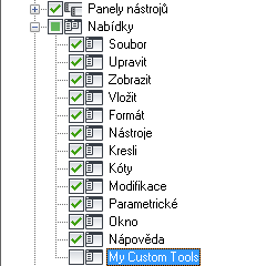 - V podokně Uživatelské úpravy: <název souboru> klikněte na znaménko plus (+) vedle uzlu Nabídky. Tím se tento uzel rozbalí.