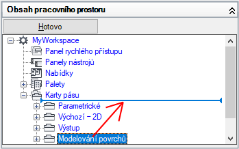 - V podokně Obsah pracovního prostoru klikněte na tlačítko Hotovo.