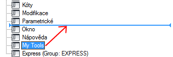 - V podokně Obsah pracovního prostoru klikněte na znaménko plus (+) vedle uzlu Panely nástrojů. Tento uzel se rozbalí.