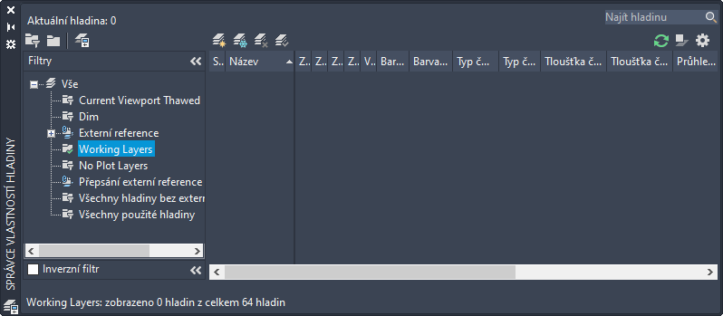 Poznámka: Když se hladiny přidávají do výkresu, který odpovídá vlastnostem filtru, automaticky se přidávají do seznamu filtrů.