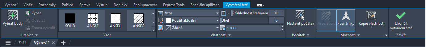 | HPORIGIN | Nastaví počáteční bod šrafování pro nové šrafovací vzory v aktuálním výkresu relativně k aktuálnímu uživatelskému souřadnicovému systému. | 0.00 | Výkres |