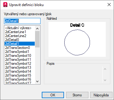 Dvojitým kliknutím na text Detail C nebo kružnici vedle textu zobrazte dialog Upravit definici bloku.