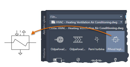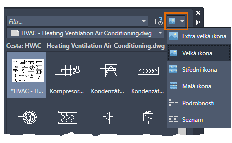 Poznámka: Při prvním kliknutí na položku Bloky z knihoven se zobrazí dialog pro výběr souboru, ve kterém můžete vybrat počáteční výkres knihovny bloků.