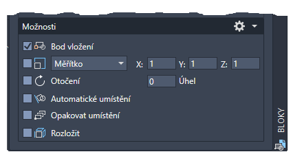 Se vkládáním bloků do výkresu jsou spojeny čtyři položky.