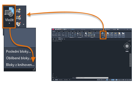 Obvykle bloky vkládáte do aktuálního výkresu z jednoho z následujících zdrojů:
