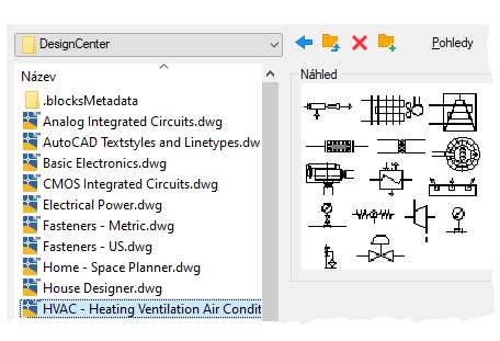 Každý výkres ve složce DesignCenter obsahuje sadu souvisejících definic bloků.